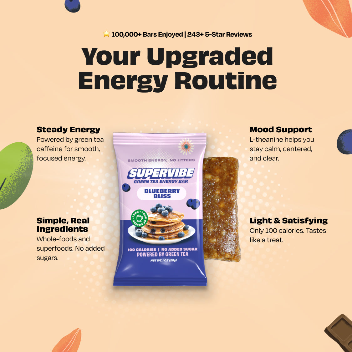 Supervibe gives your body light fuel and steady energy in one small bar.