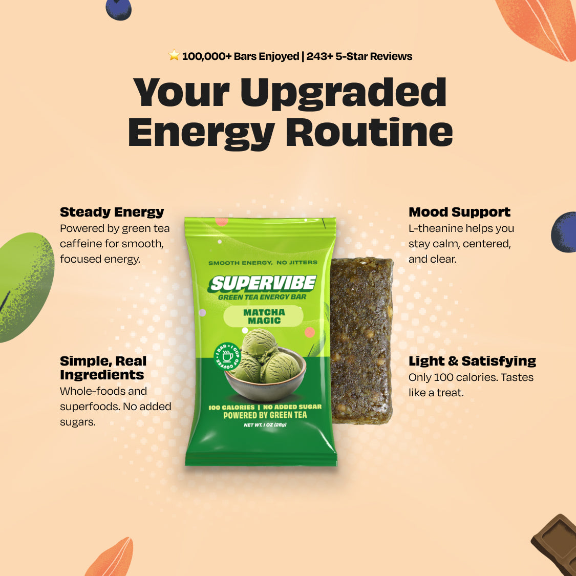 I'm obsessed with the Matcha Magic bar! The funny thing is I don't like matcha in liquid form. I have not had a regular cup of coffee since the new year and your Supervibe bars have definitely helped and I can feel the difference! Will be ordering more!